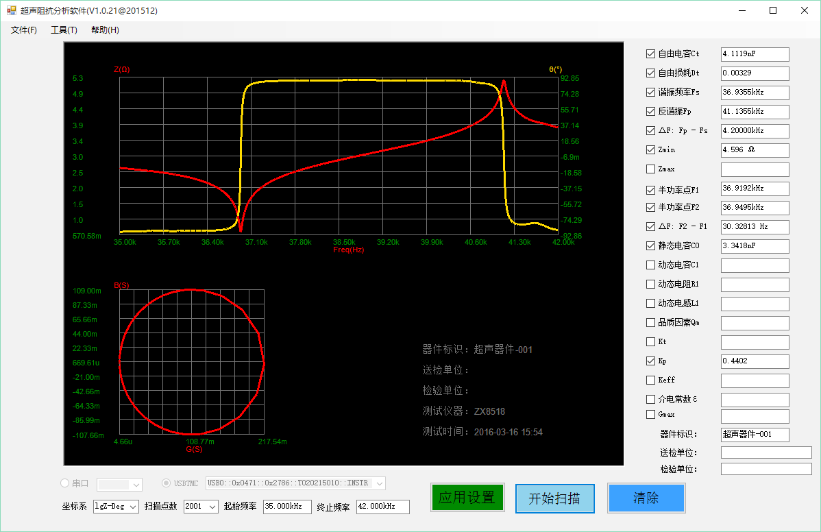 ZX70A/ZX80A系列超聲阻抗分析儀在儀器上就實現掃描圖形,還可以把儀器上屏幕顯示圖形和測試數據直接拷貝到U盤。同時儀器自帶電腦軟件界面,標配版無需另行購買。