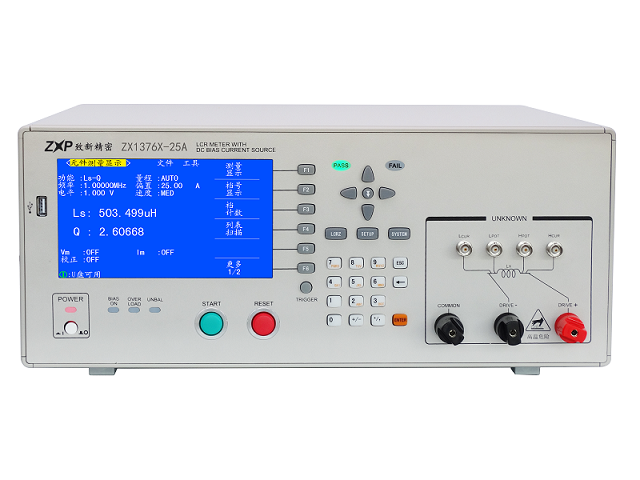 ZX1376是內(nèi)建高頻LCR數(shù)字電橋和0~25A直流偏置電流源的電橋偏流一體機(jī),低達(dá)0.25mA的電流分辨率,25A時(shí)輸出電壓高達(dá)11V,可分析電感器中鐵心的特性,作為電感器質(zhì)量檢測(cè)或產(chǎn)品特性的分析。內(nèi)置的偏流源噪聲更小,控制更靈活;內(nèi)建比較器,方便組建到電感器檢測(cè)的自動(dòng)化生產(chǎn)線。ZX1376型號(hào)僅含0~25A直流偏置電流源,可通過標(biāo)準(zhǔn)RS232C接口方便的與外部LCR表連接。